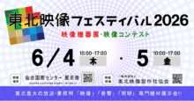 東北映像フェスティバル2026【映像機器展】開催のご案内 事務局 機器展 投稿日:2025.11.19 「東北映像フェスティバル2026(映像機器展・映像コンテスト)」は、 2026年6月4日(木)・5日(金) の2日間、仙台国際センター展示棟 にて開催いたします。 本イベントでは、最新の映像機器展示に加え、地域クリエイタ […] 続きを読む… from 東北映像フェスティバル2026【映像機器展】開催のご案内